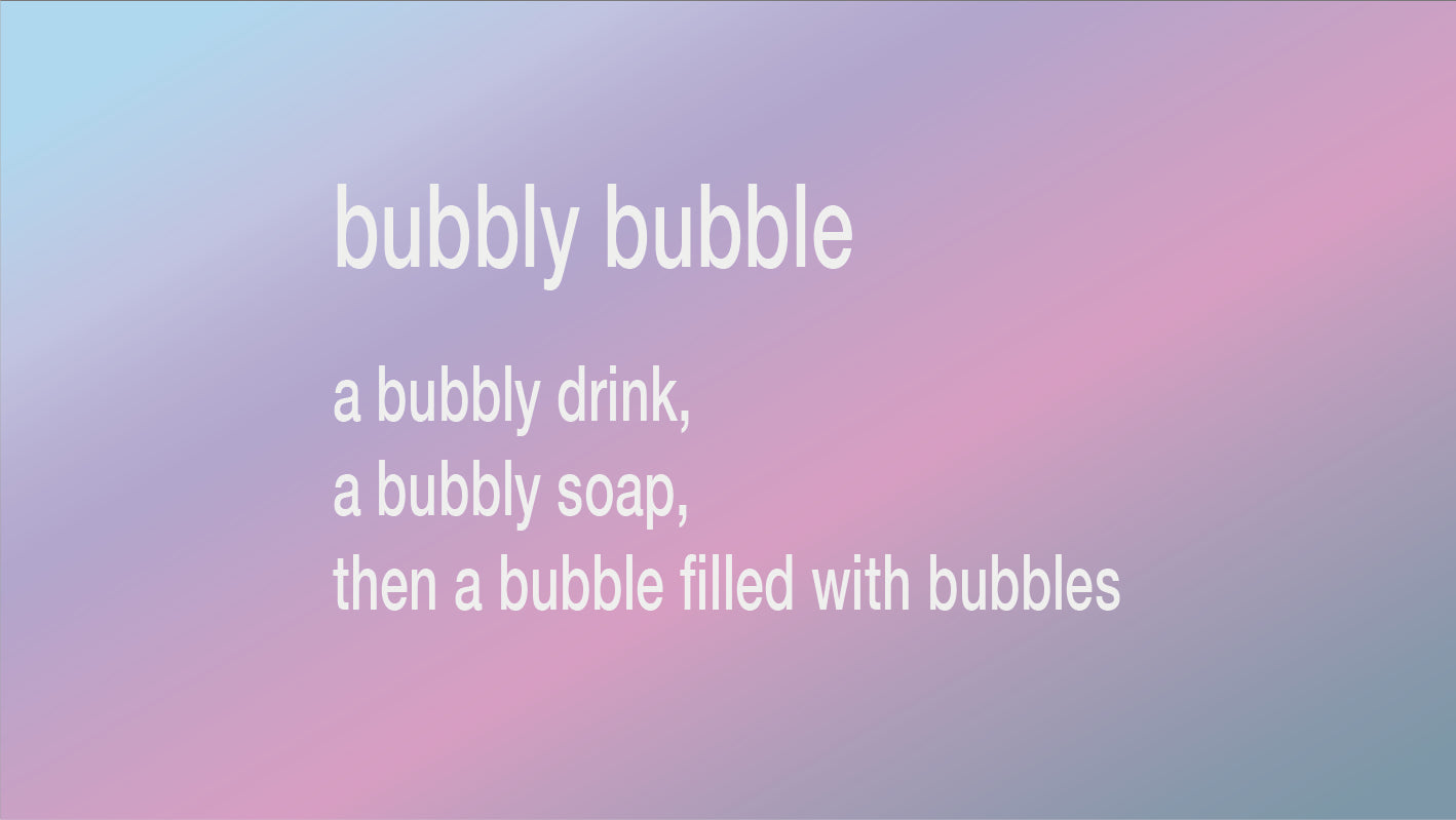一杯起泡的飲料,一塊起泡的肥皂,然後是一個充滿氣泡的氣泡
